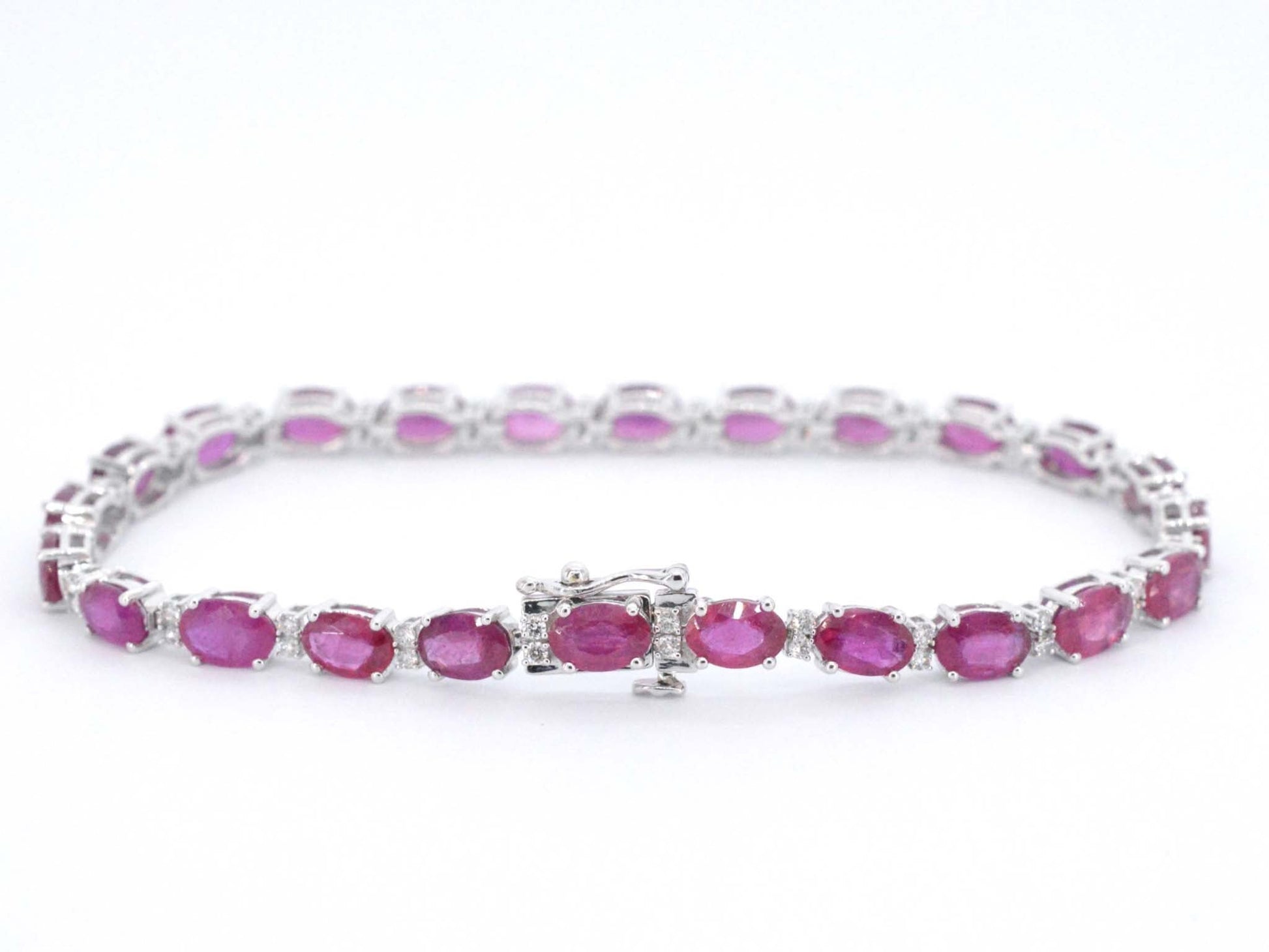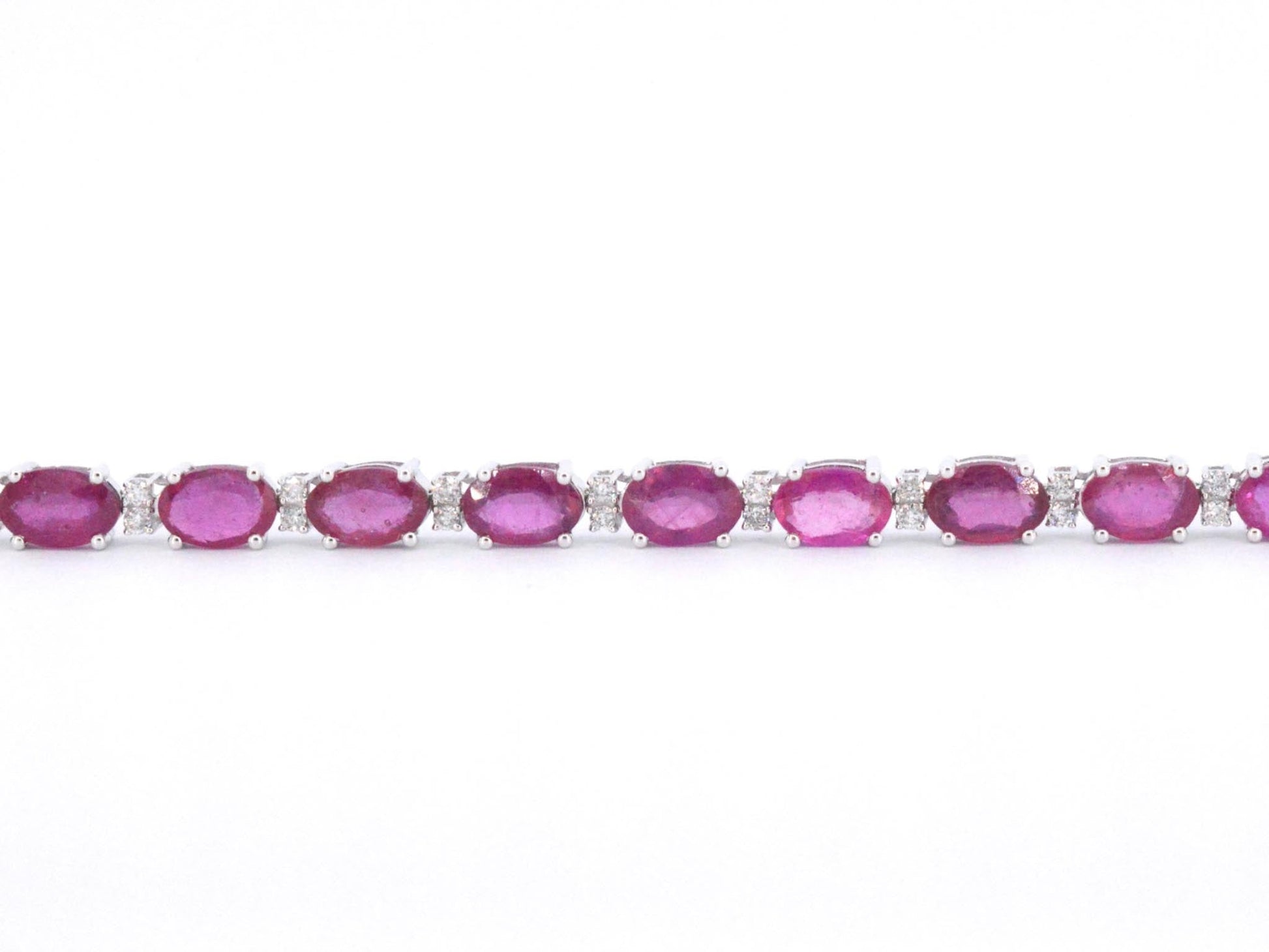 Witgouden tennisarmband met diamanten en robijn