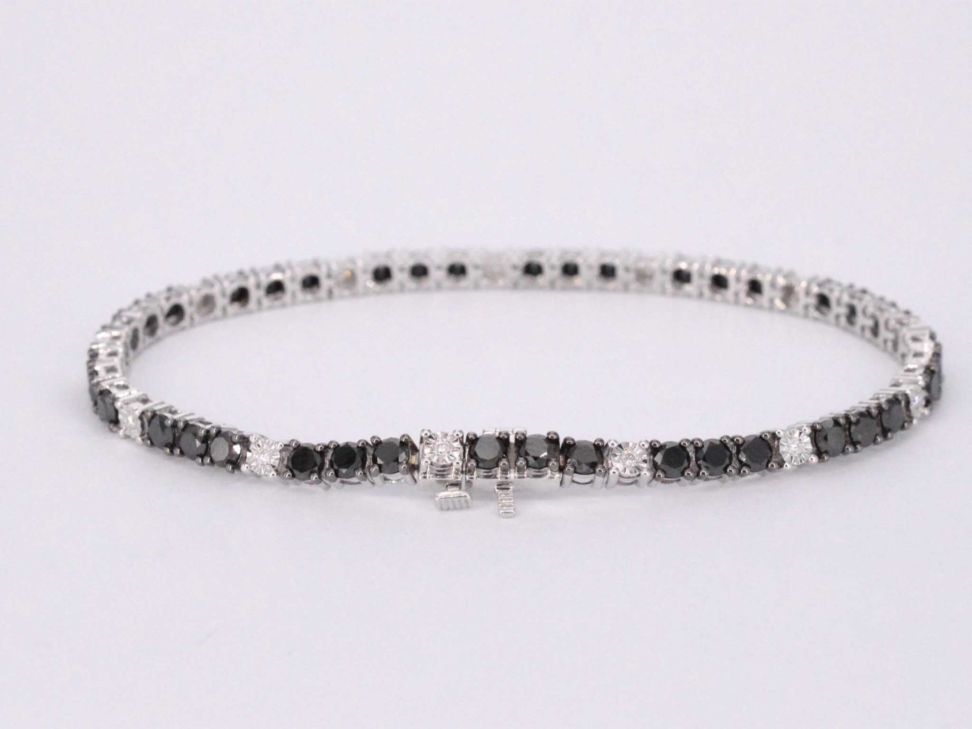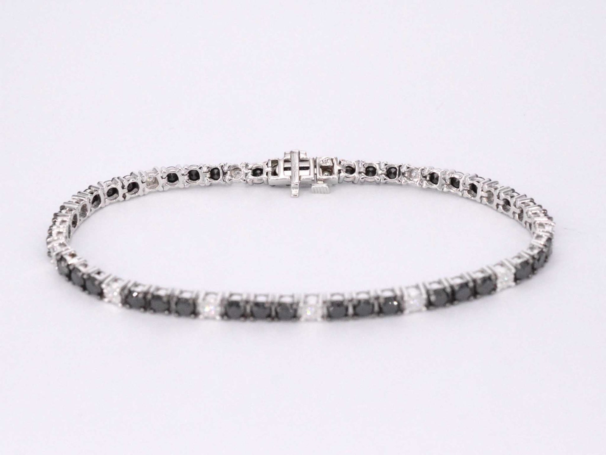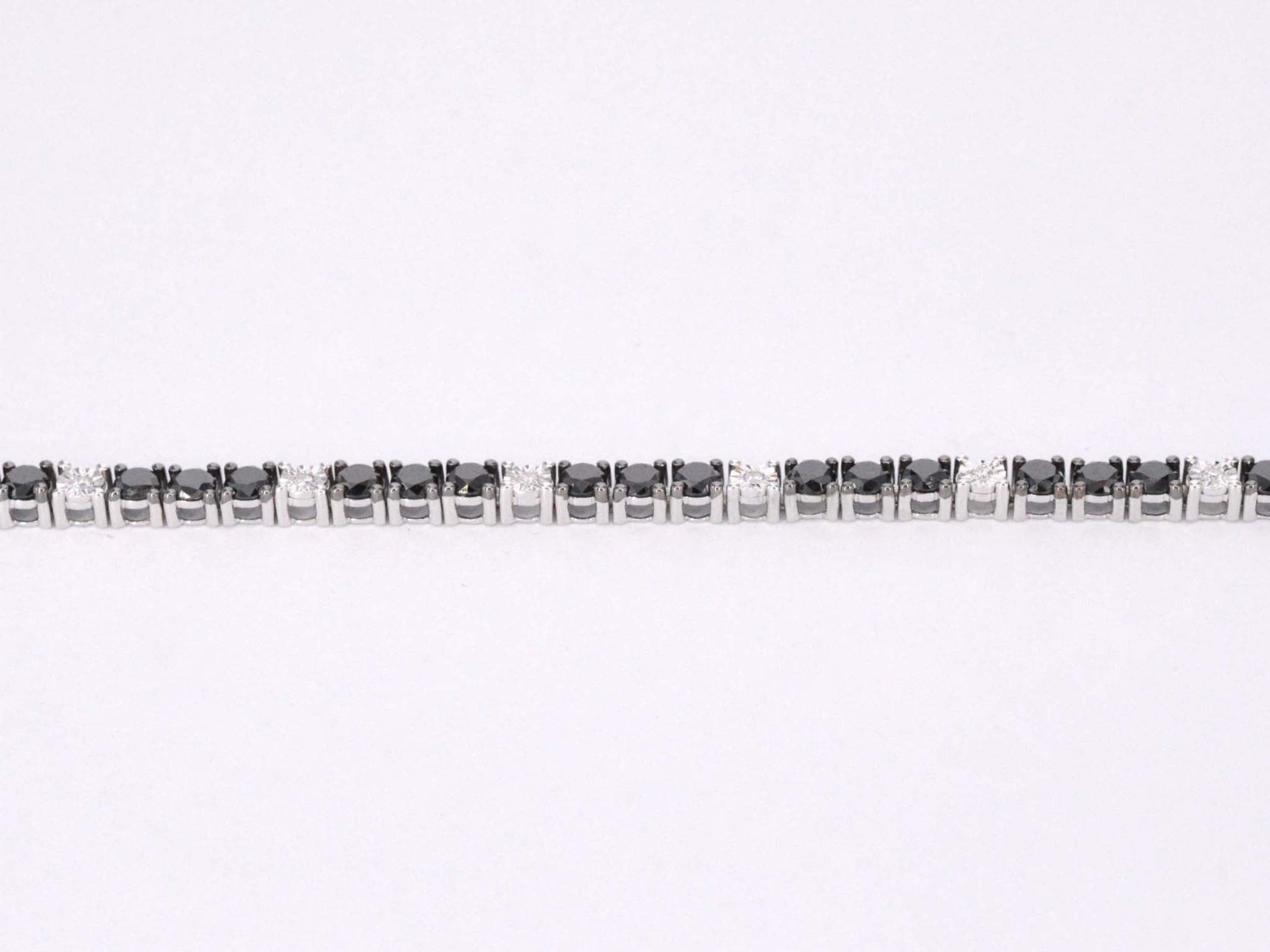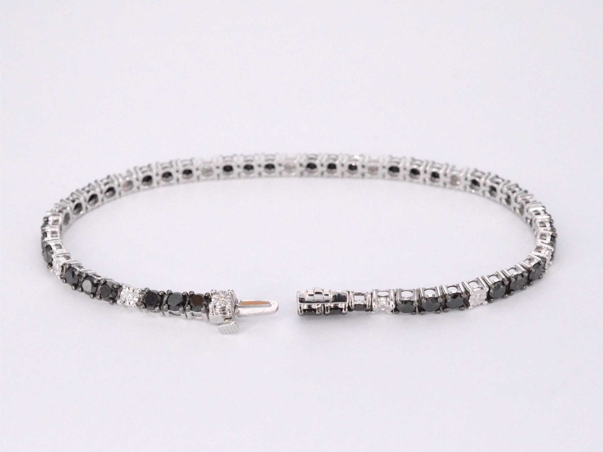 Witgouden tennisarmband rondom gezet met zwarte en witte diamanten